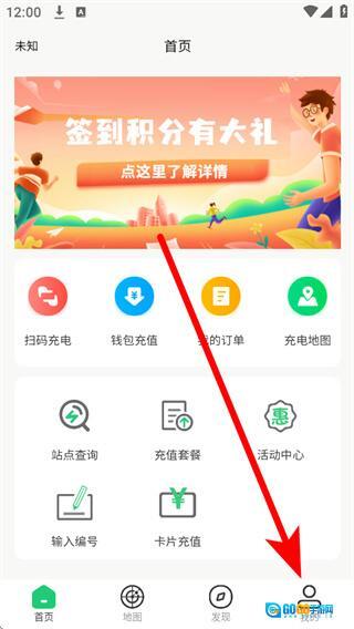 打开铁塔充电应用后,点击底部导航栏中的“我的”选项,即可进入个人中心页面。