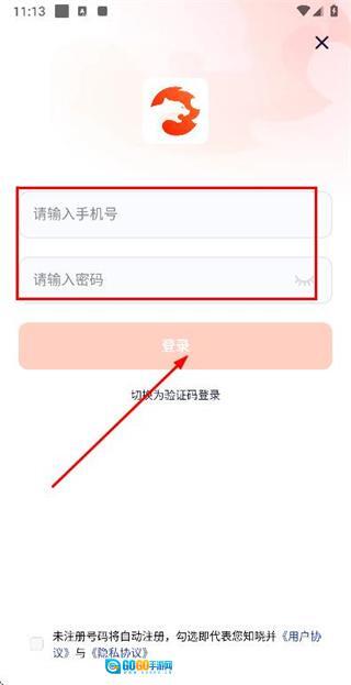 在登录页面输入手机号与密码,勾选相关协议后,点击登录按钮即可完成账号登录流程。