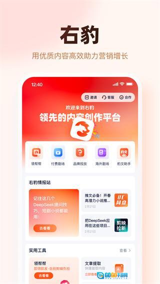 右豹是面向创作者的短视频创作与推广综合服务平台,为用户提供丰富的视频模板、大量短剧本和多场景资源,新手也能轻松使用模板制作内容;平台还设有小说推文、短剧推广等变现任务,创作者可通过完成任务获得收益。此外,右豹支持智能素材匹配、关键词优化和数据可视化分析功能,能一键将作品同步至多个平台,同时提供免费版权授权服务,帮助创作者提高作品曝光度和收益水平。