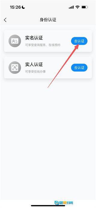 在身份认证页面,点击实名认证旁边的“去认证”按钮,就能进入实名验证页面。