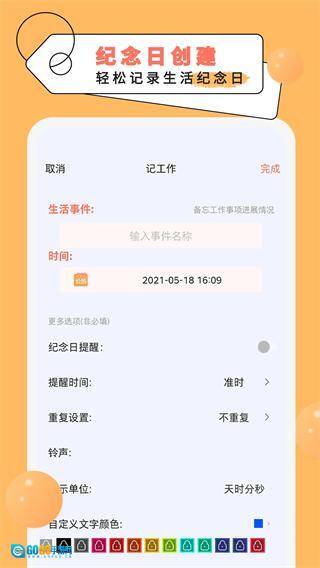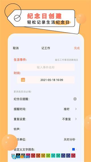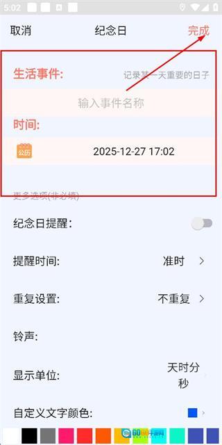 在纪念日编辑页面填写好相关信息后,点击页面右上角的“完成”按钮,即可保存这个纪念日。