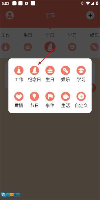 在分类选择菜单里点击纪念日选项,即可进入纪念日编辑页面。