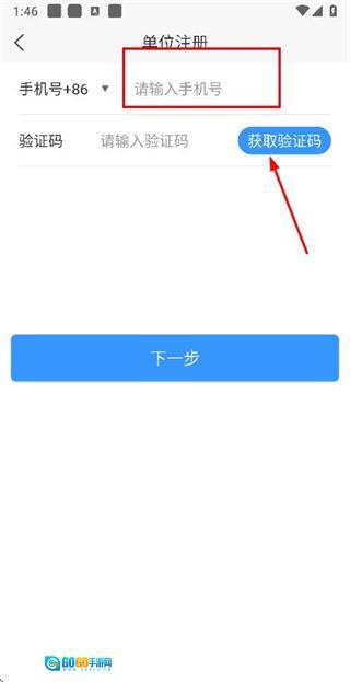 在注册账号页面输入验证码后,点击“下一步”按钮即可进入信息填写界面。