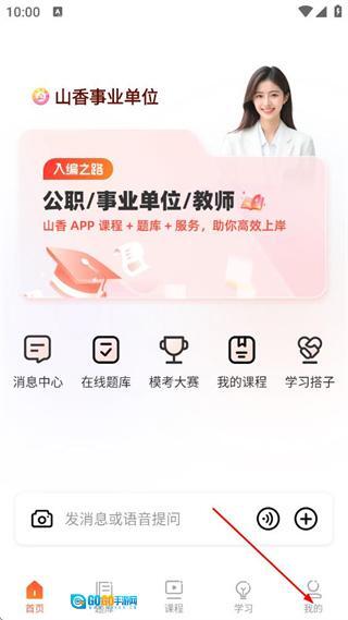 在山香事业单位的首页,点击页面底部的“我的”选项,即可进入个人页面。