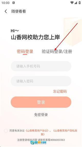 在个人页面的登录界面,选择验证码登录/注册选项,即可切换到验证码登录/注册界面。
