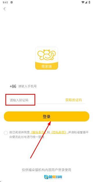 在验证码登录页面输入手机号,勾选相关协议后,点击“获取验证码”按钮。
