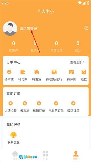 在个人中心页面,点击“请点击登录”选项,即可进入登录页面。
