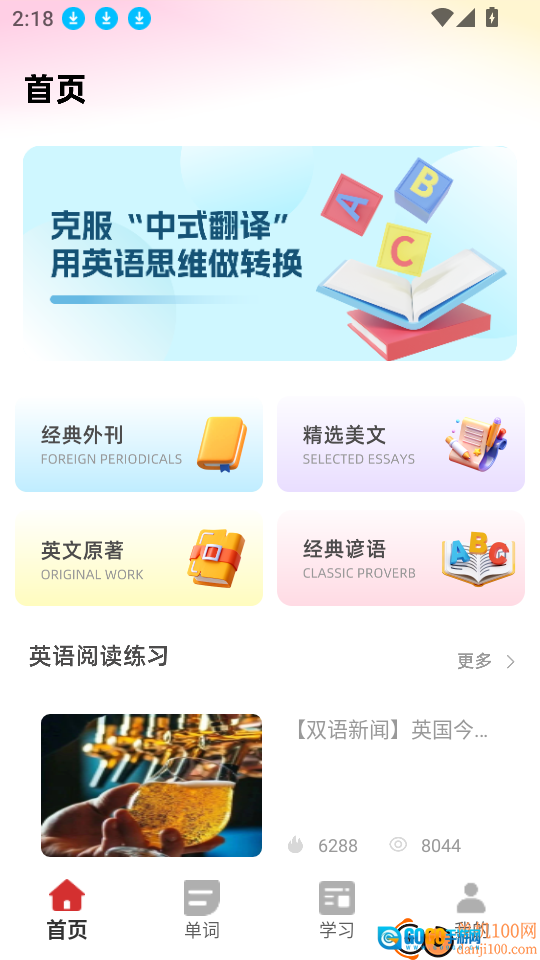 支持用户利用英语外刊与经典谚语资源开展阅读练习,可自由阅读英文原著,还能实时阅读外刊。