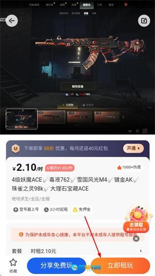 在账号详情页面,点击“立即租玩”按钮,就能完成该账号的租赁流程。