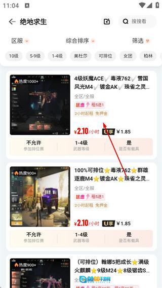 在所有游戏页面中,点击目标游戏,即可进入该游戏的账号租赁列表页面。