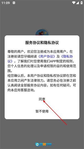阅读用户协议及隐私协议后,点击同意,进入应用。