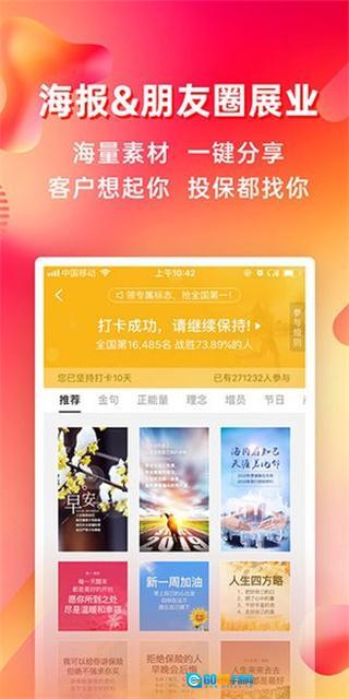 整合素材、产品、获客等核心功能,从多维度帮助保险代理人扩大业务版图、增强获客实力与成单效能,成为推动业务增长的坚实后盾,使职业发展更具竞争力。