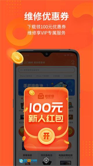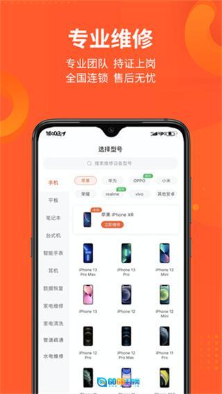打开极客修App,进入应用后点击底部导航栏中的“维修”选项,即可进入维修服务选择页面。