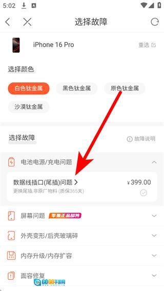进入故障选择页面后,首先确定设备的颜色,接着在故障列表里挑选相应的故障类型。