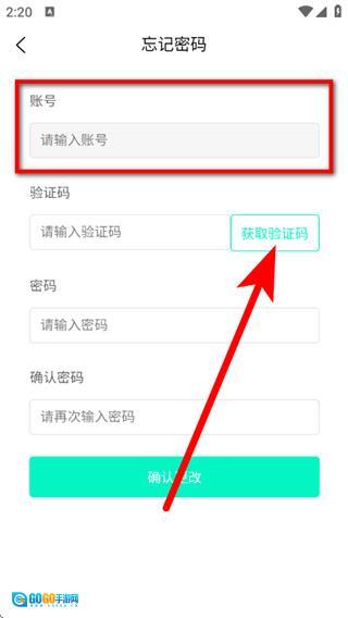 在忘记密码页面,输入账号,点击获取验证码。