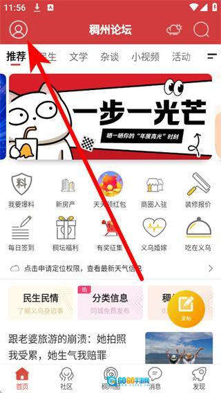 打开稠州论坛后,点击首页左上角的个人中心入口,即可进入我的页面。