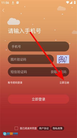 在登录界面,点击右下的立即注册,切换注册界面。