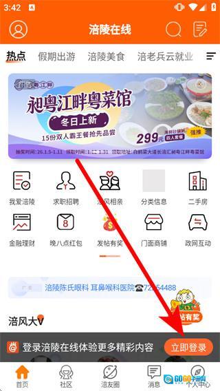 打开涪陵在线平台,找到首页底部位置,点击“立即登录”按钮,即可进入登录页面。