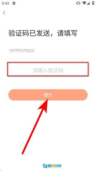进入验证码页面后,把收到的短信验证码输入到验证码框里,再点击提交按钮,就能完成账号注册流程了。