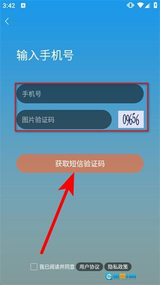 在这个页面的手机号输入框中填写你要注册的手机号码,然后在图片验证码框里输入对应的内容,最后点击“获取短信验证码”按钮。