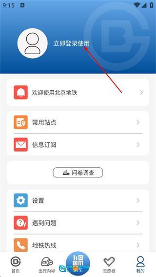 在个人中心页面,点击“立即登录使用”按钮,即可进入北京地铁的登录页面。