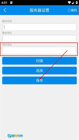 在服务器设置界面中,输入网络地址相关的信息后,点击保存按钮即可完成服务器的配置。