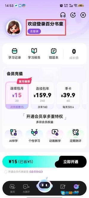 打开你的百分书童App,在个人中心点击登录功能。