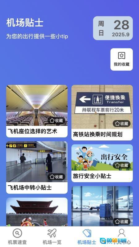 还为用户配备了线上专属的收藏中心,用户能够把感兴趣的机场以及机场贴士内容收藏起来。