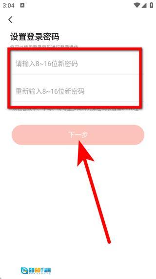 在登录密码设置页面完成密码设置后,点击“下一步”按钮,即可完成账号注册流程。