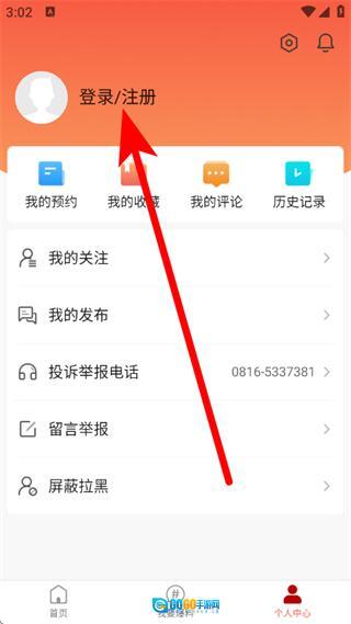 在个人中心页面,点击登录注册,进入登录页面。
