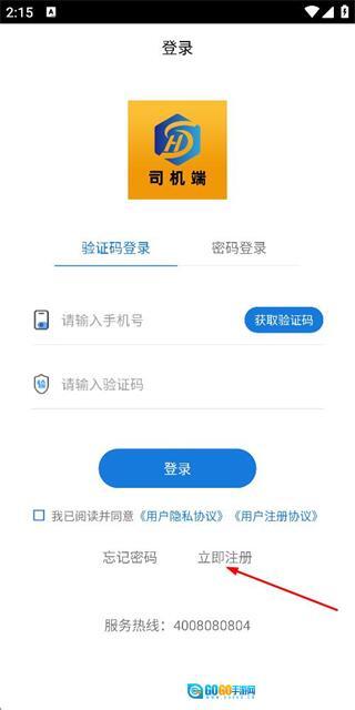 在登录页面点击立即注册选项,进入注册账号页面。