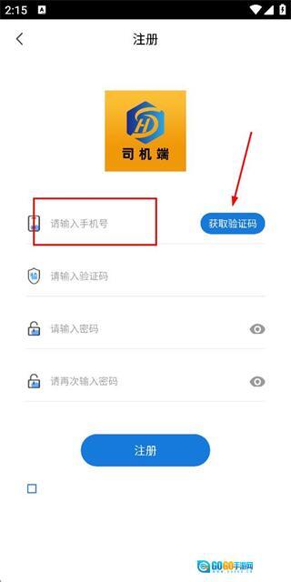 在注册账号页面填写手机号码后,点击发送验证码。
