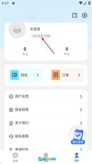 进入岸涌咨询后,点击底部的“我的”选项,就能进入个人中心页面。