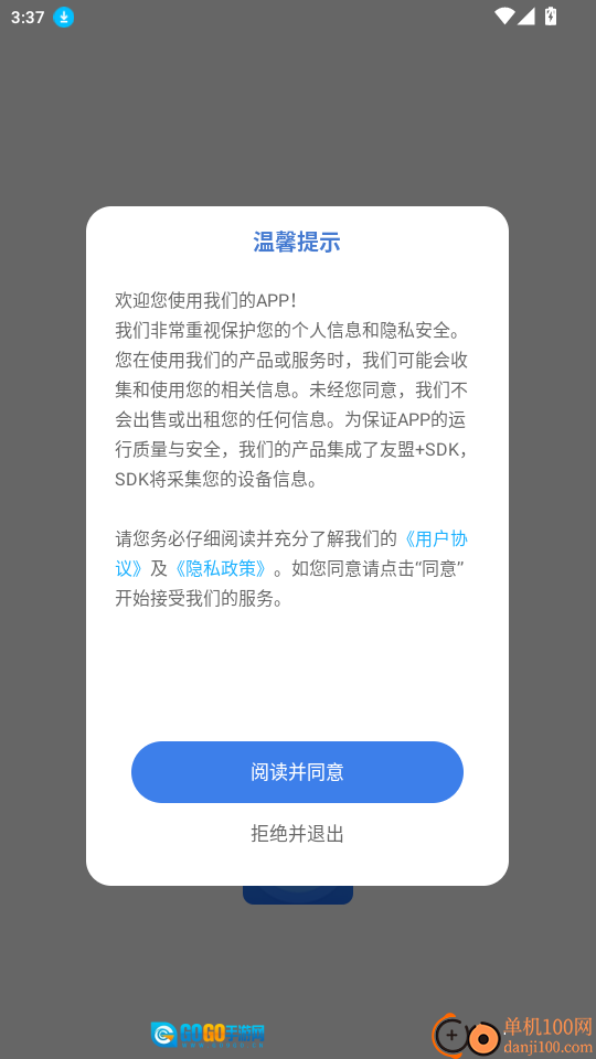 打开软件阅读“温馨提示”点击“阅读并同意”进入