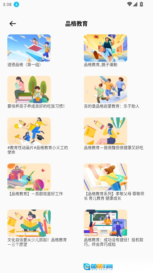 进入品格教育页面后,可查找你感兴趣的课程资源,点击即可进入。
