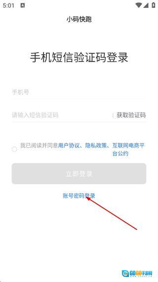 在短信验证码登录页面,选择账号密码登录选项,即可切换到账号密码登录界面。