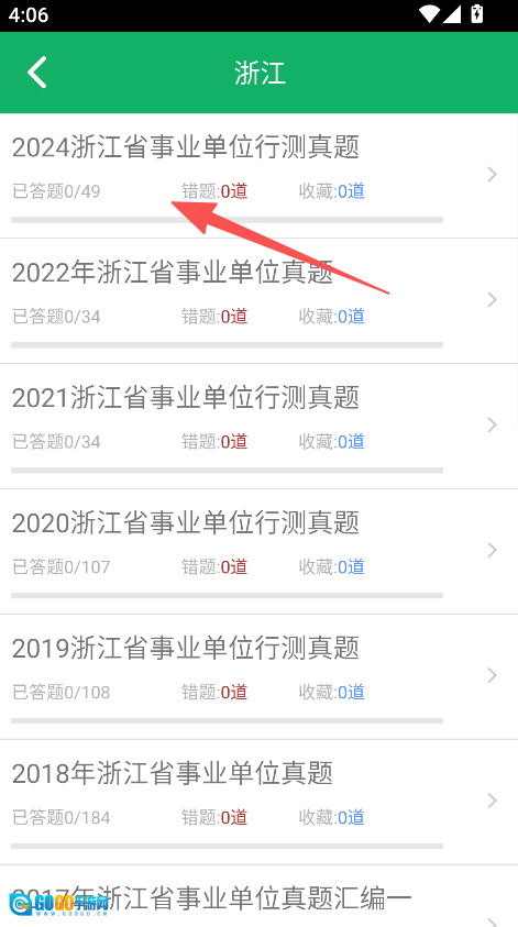 启动软件,进入历年真题板块,挑选目标省份(例如浙江)。
