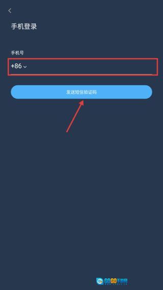 4、进入手机号输入界面后,填写完手机号,点击发送短信验证码的按钮,通过获取验证码来完成登录流程。
