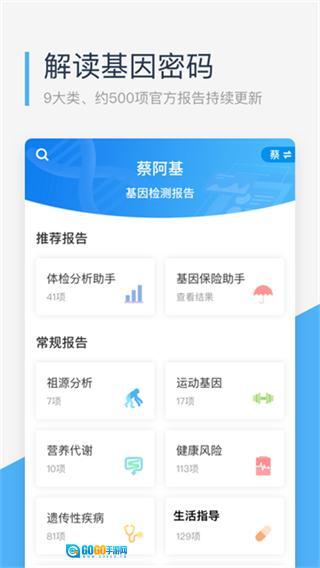包含祖源分析、健康风险、营养代谢、运动基因等10个大类的内容,细化出超过500项具体报告,从各个方面满足用户对基因信息的探索需求。