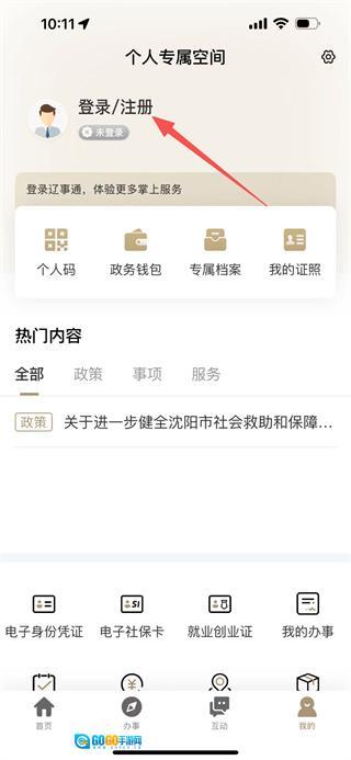 在辽宁通首页,点击底部的“我的”选项,即可进入个人中心页面。