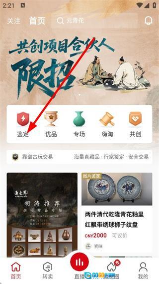 1、在首页,点击鉴定,进入古玩鉴定页面。