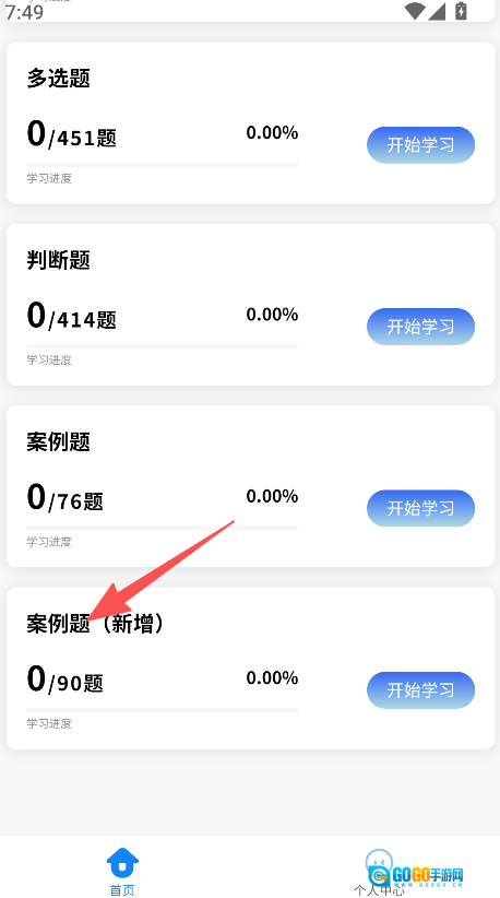 选择多选题、判断题等题型,点击开始学习。