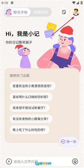 在聊天手帐页面点击右上角的头像,即可进入个人中心页面。