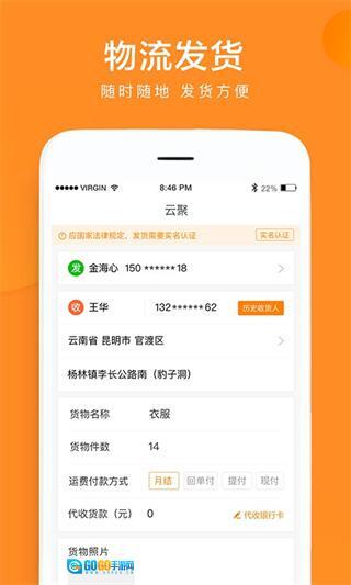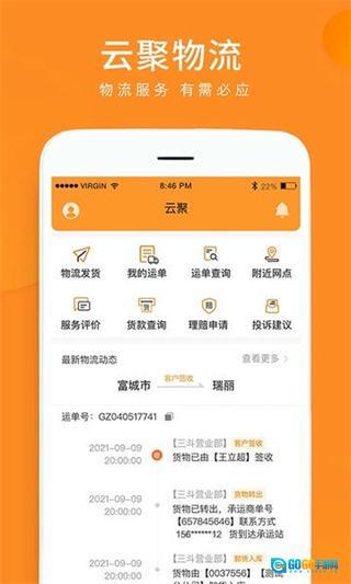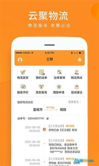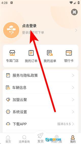 在云聚物流的首页,点击底部的“我的”选项,即可进入个人中心页面。