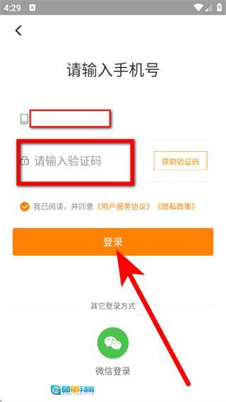 在个人中心页面,点击登录,进入手机号登录页面。