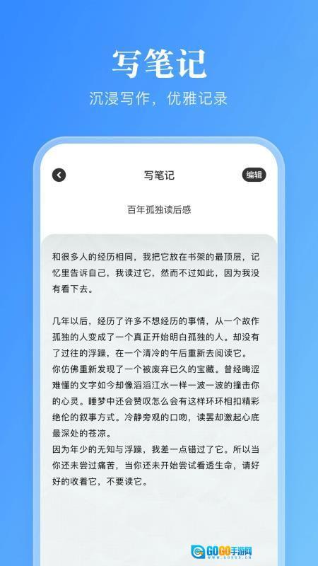 能让用户更专注地阅读小说,也方便用户随时写作并记录阅读笔记;