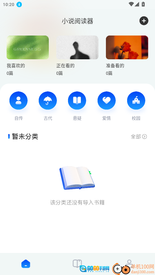 进入小说阅读器的主页后,找到那个带“+”符号的按钮,点击它就能进入下一步操作。