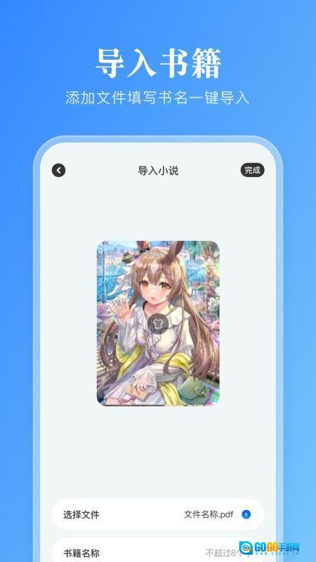 你可以把自己喜欢的各类小说书籍导入到这个平台,导入之后用户就能随时便捷地阅读这些小说了。