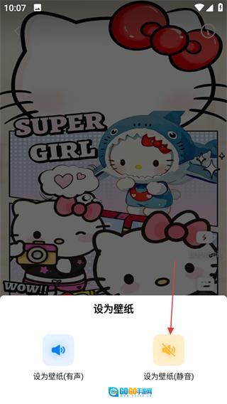 4、在设为壁纸的选项里,选择“设为壁纸静音”这一选项,即可完成壁纸的设置操作。