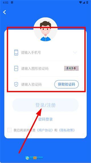 3、按顺序输入手机号码,点击获取验证码并填写,勾选相关选项后,点击登录注册按钮,即可完成注册流程。